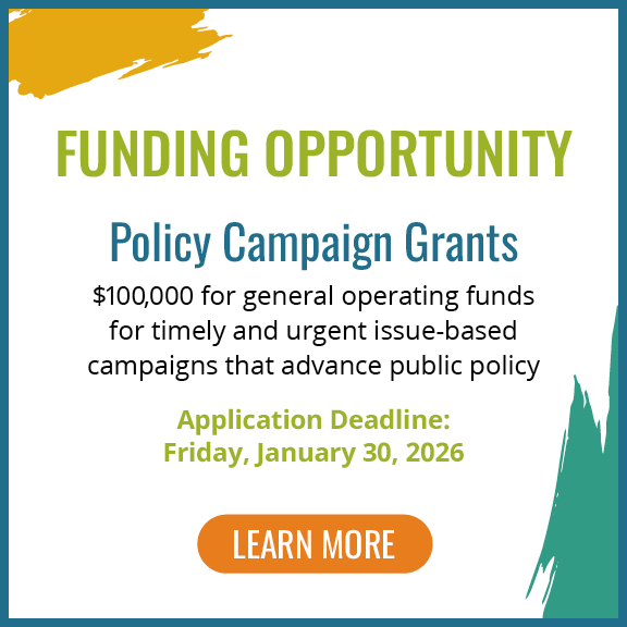 The RFP is open for our Policy Campaign Grants which offer up to $100,000 in general operating support for timely issue-based campaigns. These grants are designed to infuse resources into grassroots infrastructure at critical moments in campaign cycles. https://ow.ly/G3LE50XFSOw